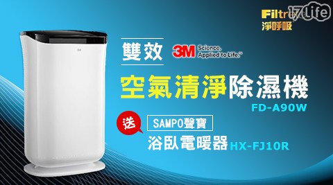 【最新出版】3M-FD-A90W 雙效空氣清淨除濕機+送【SAMPO聲寶】HX-FJ10R浴臥電暖器-